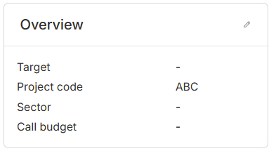 This is section contains the metadata about the project that you input during the onboarding flow. You can edit this by hovering over the Overview card and clicking the edit icon at the top right of the card.