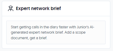 This section shows you the brief that Junior wrote for you for the expert networks to kick off your project.